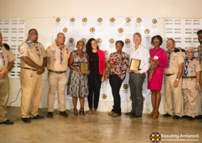 Komo tradishon Scouting Antiano ta rekonosé riba dia di San Jorge un instituto òf persona ku a destaká riba tenero di trabou boluntario komo resipiente di e “Rosa di San Jorge” pa su aporte brindá na mehorashon di komunidat di Kòrsou. E aña aki nos ta rekonosé 2 resipiente. Ku gran entusiasmo nos di Scouting Antiano riba dia di San Jorge 2021 a otorgá un “Rosa di San Jorge” na e tim di Epidemiologia, Bakunashon i “Frontliners” representá pa Dr. Izzy Gerstenbluth den e lucha kontra Covid-19. E tim aki a sa di prevalesé i enfrentá e dragon di Covid-19 ku balentia riskando nan mes bida pa por a skapa esnan di otro. E otro Rosa di San Jorge 2021 nos a otorgá na “Voedselbank Curaçao” representando “Samenwerkende Hulporganisaties” i boluntarionan ku ta traha huntu den distribushon di paketenan di komestibel pa esnan ku a haña nan mes den pèrtá i sin trabou, komo konsekuensia di Covid-19.